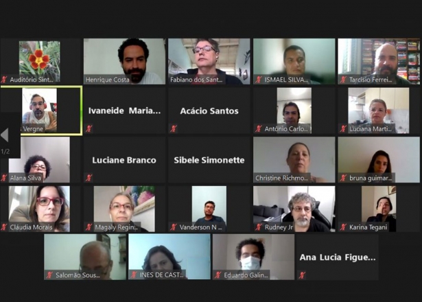 Em reunião setorial (foto) na manhã da sexta-feira, 16 de julho, os servidores do TRT reafirmaram a manutenção da greve sanitária como forma de proteger a saúde dos trabalhadores em meio à pandemia. A administração do Tribunal determinou a retomada parcial das atividades presenciais a partir de 26 de julho, embora os números de casos e de óbitos pela covid-19 se mantenham elevados.