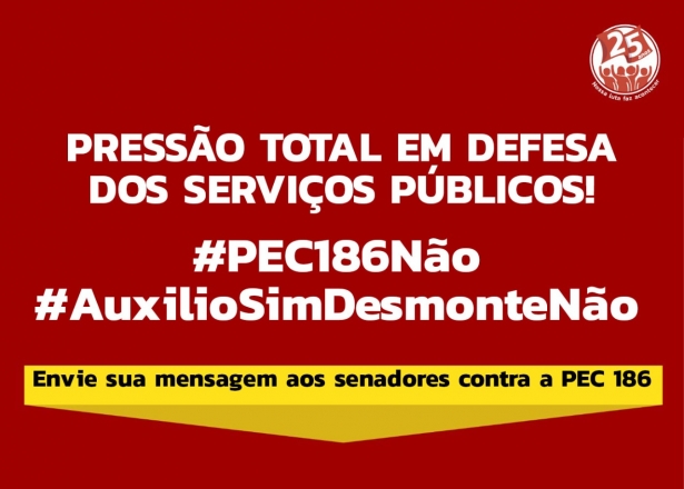 Para intensificar a mobilização contra a PEC, o Sindicato convocou uma rodada de assembleias setoriais nesta semana e uma assembleia geral estadual para o próximo dia 13 de março, às 14h, via plataforma Zoom. O Sintrajud impulsiona a campanha "Pressão total em defesa dos serviços públicos" e convida a categoria a compartilhar as informações publicadas nos meios de comunicação da entidade com os colegas e familiares, a fim de incidir sobre o parlamento contra a aprovação da PEC 186, além de enviar e-mail a todos os senadores (clique aqui) e participar na consulta pública disponibilizada pelo Senado (vote aqui).