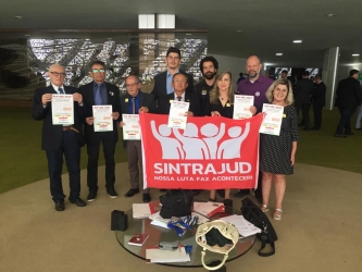 O Sintrajud e a Fenajufe vêm atuando junto com outras categorias contra o projeto. E nesta terça, a delegação do Sindicato que participa da caravana nacional convocada pela Federação da categoria acompanhará o debate sobre o PLS na audiência pública. Estão em Brasília Henrique Sales (servidor do TRT-2 e diretor do Sindicato), Matilde Gouveia (oficiala de justiça do TRT-2), Coaracy Caracas (JF), Márcio Lóis, Assunta De Gaspari e Norival de Souza (aposentados do TRE) e Maria Helena Leal (aposentada do TRF).