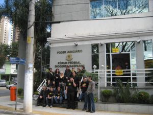 Na greve de 2012, em frente ao prédio onde trabalhava (Arquivo Sintrajud).