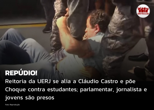 A diretoria do Sintrajud repudia as medidas tomadas pela reitoria da Uerj, a agressão e prisão dos estudantes, do trabalhador da comunicação e do deputado Glauber Braga, que vem sendo intensamente perseguido pelas forças milicianas que tentam caçar o seu mandato. Reiteramos o apoio à luta por mais verbas para a assistência e permanência estudantil e a defesa da Universidade pública, gratuita e de qualidade.