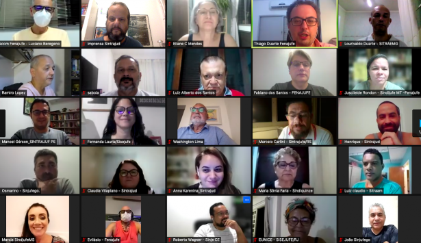 Imagem da reunião da Fenajufe, realizada por videoconferência, que teve a participação do Sintrajud