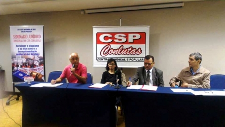 A avaliação foi compartilhada por José Maria de Almeida (Zé Maria), metalúrgico e presidente do PSTU, e pelo economista e professor da Unicamp Plínio de Arruda Sampaio Jr., na abertura do Seminário Jurídico Nacional da CSP-Conlutas, central a que o Sintrajud é filiado.