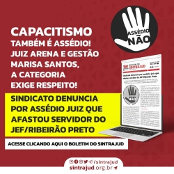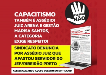 Para a diretoria do Sindicato, práticas que expressam capacitismo, discriminação e assédio exigem posicionamento. Mesmo quando a atitude é individual envolve a coletividade. As pressões por produtividade a qualquer custo desrespeitam o conjunto dos trabalhadores que mantêm o Judiciário funcionando, mesmo em situações por vezes precárias. E as frequentes denúncias de assédio moral contra servidores e servidoras evidenciam que o combate a essas práticas é uma luta coletiva.