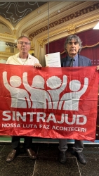 O Sindicato continua percorrendo os locais de trabalho para reforçar a campanha contra as terceirizações e em defesa dos/as requisitados/as. Nesta quarta-feira, 07, o dirigente Maurício Rezzani esteve no cartório localizado no Conjunto José Bonifácio, na Zona Leste da capital.Também no dia de ontem, os dirigentes do Sintrajud Ciro Manzano e Maurício Rezzani estiveram na Assembleia Legislativa buscando apoio de deputadas e deputados.Mônica Seixas (PSOL/SP) gravou um vídeo em apoio à luta e se comprometeu a questionar formalmente o TSE.A assessoria do deputado Eduardo Suplicy (PT/SP) recebeu as demandas da categoria e se comprometeu a também cobrar o TSE via ofício.E o deputado Carlos Giannazi (PSOL/SP) manifestou indignação com o tema e declarou total apoio à causa. Ele também enviou ofício ao TSE.Na Comissão de Administração e Serviço Público (CASP) da Câmara dos Deputados, a deputada federal Sâmia Bomfim (PSOL/SP) conseguiu aprovar a realização de uma audiência pública sobre a terceirização e a segurança das eleições. O evento acontecerá em Brasília, em data ainda a ser marcada.No próximo dia 19 de maio (segunda-feira), acontece novo ato contra as terceirizações, por nomeação de todos/as aprovados/as no último concurso e em defesa dos/as requisitados/as.Cidades contra a terceirização