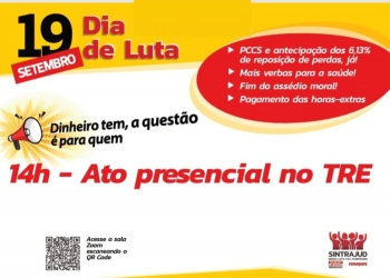 Sintrajud convoca ato no TRE às 14h desta quinta-feira (19)