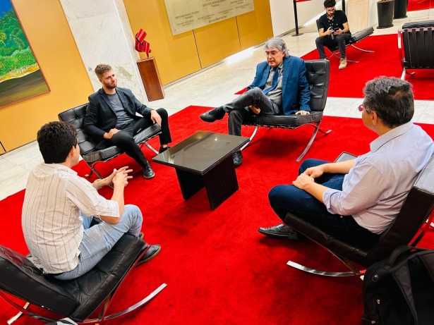 Deputado Reis (PT) com representantes do Sindicato. Foto: Imprensa Sintrajud