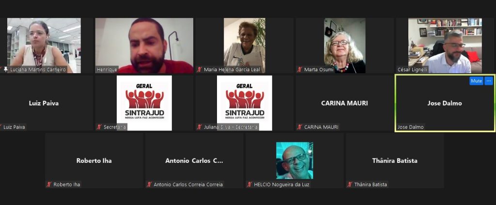 Essa é a avaliação de diretores do Sintrajud que nos últimos dias visitaram diversos setores do Tribunal para conversar com as chefias sobre a compensação. Nesta quinta-feira, 14 de julho, eles fizeram reunião virtual com servidores do TRF-3 e da JF (foto) para discutir as próximas medidas a serem tomadas pela categoria contra a cobrança indevida.