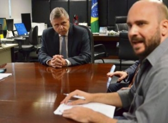 Novo presidente do TRE, desembargador Nuevo Campos (ao fundo), e o diretor do Sintrajud Tarcísio Ferreira. (Foto: Gero Rodrigues)