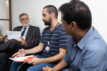 (Fotos: Kit Gaion)[/caption]Ele se reuniu com o diretor Henrique e com o servidor Vanderson Nunes Costa, que falaram do impacto da mudança abrupta nas regras do teletrabalho sobre a vida familiar e a organização pessoal dos muitos servidores adaptados ao trabalho a distância desde o início da pandemia de covid-19. Henrique e Vanderson entregaram ao ministro o abaixo-assinado que o Sindicato fez circular na categoria e que já contava até então com mais de 1.500 assinaturas em repúdio à norma editada pela administração do TRT-2.